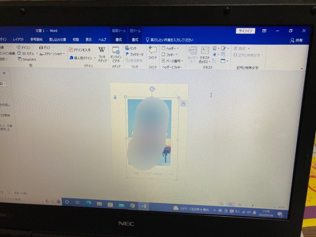 - 挿入した後、文字列の折り返しオプションにて前面を選択