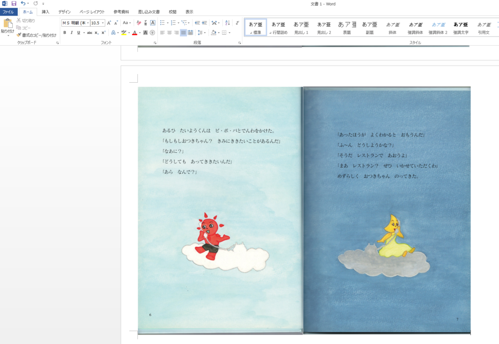片面ずつ取ったものを、Word内で結合していきます。きっと専用のツールを使えばもっと早いと思います…